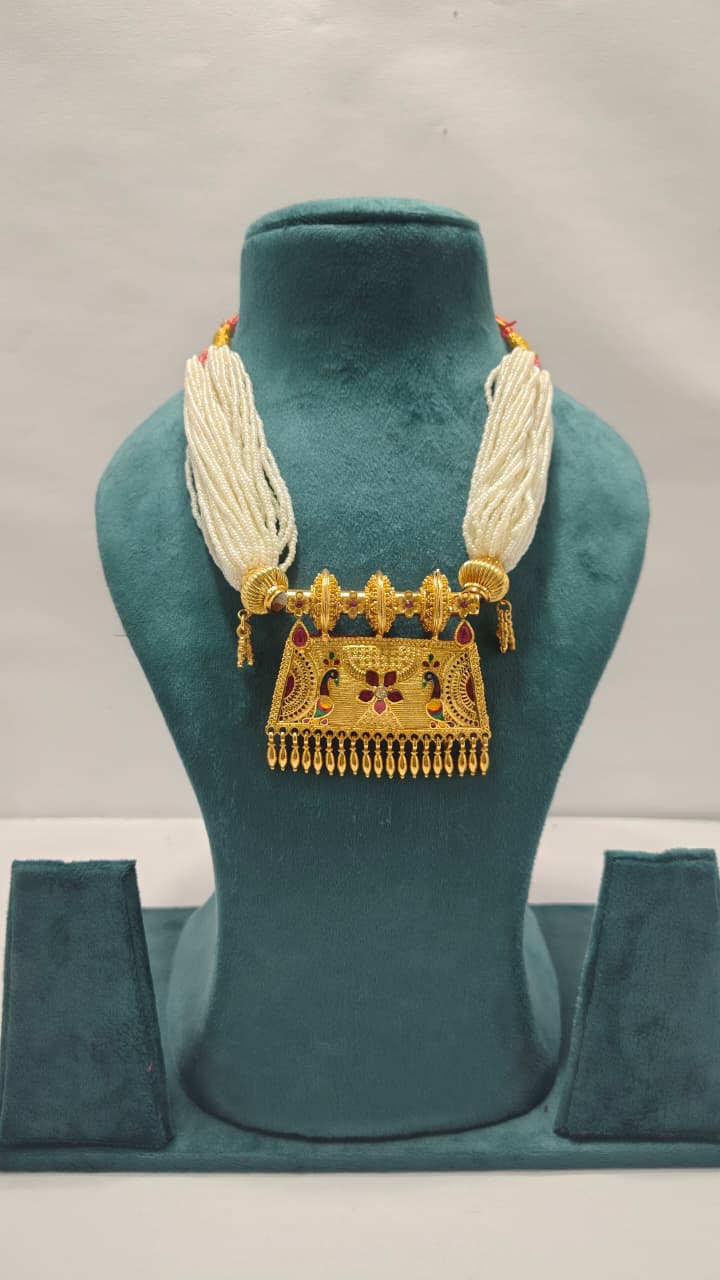 अपने ब्राइडल लुक में राजस्थानी शान जोड़ें इस Royal Tevta Necklace Set के साथ।